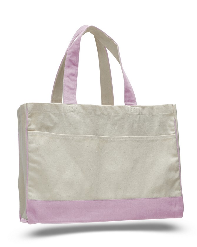 12 oz. Canvas shopping tote bag w/27" self fabric handles, inside zipper pocket. Full side and bottom gusset.