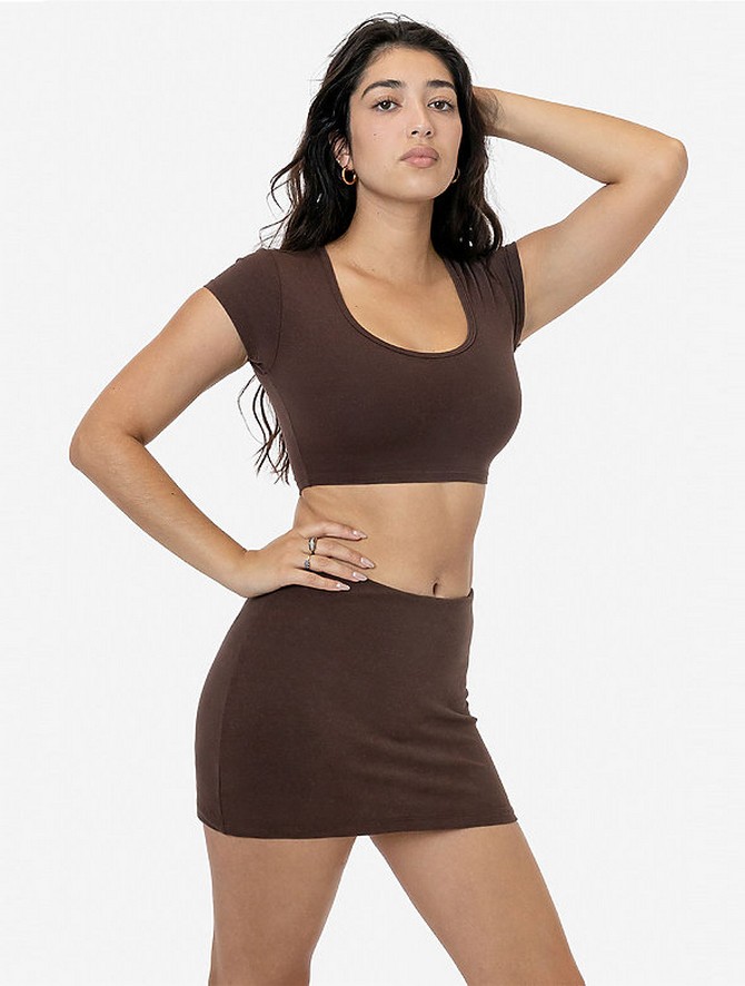 This crop top is part of our premium cotton spandex collection, made of a heavyweight cotton spandex and garment dyed for a smooth, shrink-free finish.