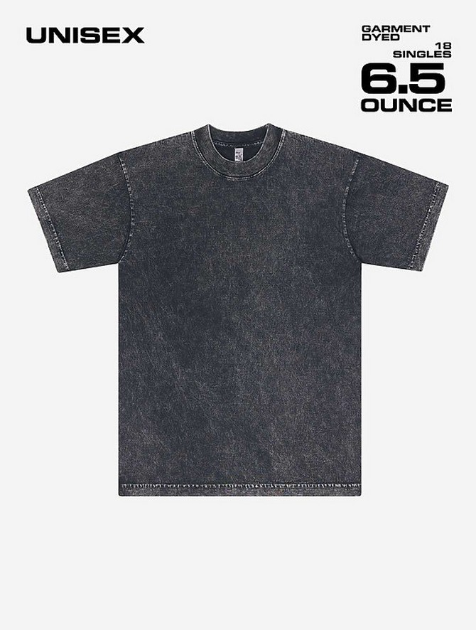 This T-shirt is just like the 1801 GD but it's garmet dyed and weighs 6.5 ounce. The mineral wash adds an extra texture to the shirt and it's washed with natural enzymes.