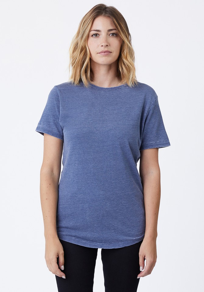24 single, 4.8 oz. 60% combed ring-spun cotton/40% polyester, semi-relaxed fit bound 1x1 rib collar, curved hemline with drop tail, soft-washedWRAP Certified. Learn more about the commitment of Cotton Heritage to ethical sourcing and manufacturing here.