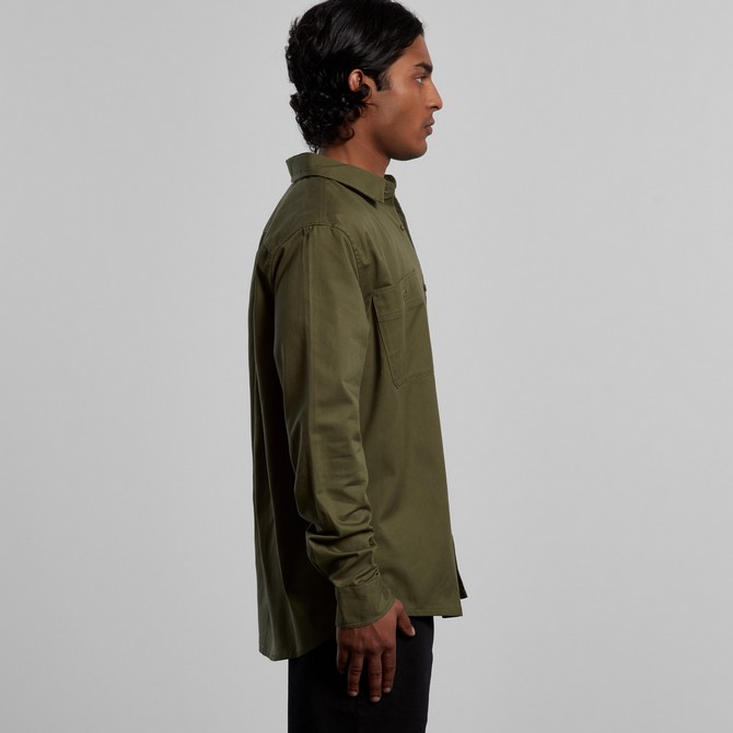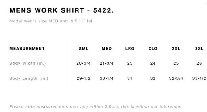 Long sleeve button up shirt, two chest pockets with pen channel, tonal buttons, side seamed, back yoke with hang loop, preshrunk to minimize shrink