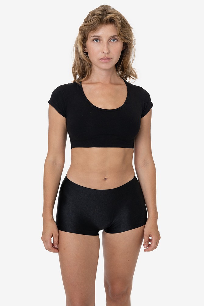 This shiny mini short offers flexibility and comfort perfect for yoga, tumbling and light active wear. We made these shorts with a seamless front, making them the ideal option for layering under skirts and dresses when you need extra security or layering over tights for a night out. Features a low rise and short inseam with just enough coverage in the back. Not intended for use in water.
