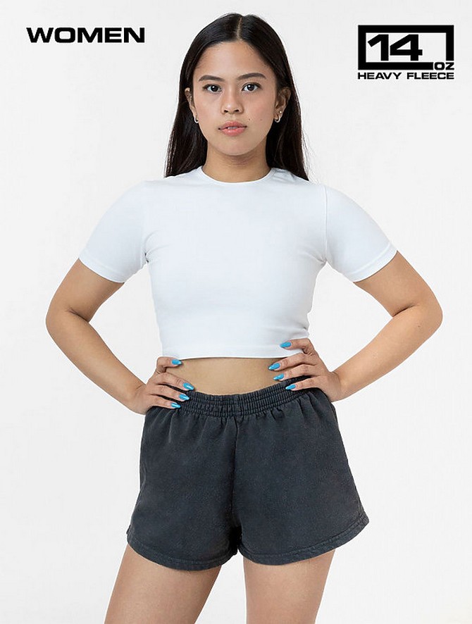 These short shorts are made of our bestselling 14 oz. heavy fleece, making it comfy, easy and versatile. Pair with our matching cropped heavy fleece sweatshirts or with a lightweight tank for indoor lounging. Take your regular size or size up for a looser fit. This style features an elastic waistband, single back pocket and is garment dyed for a naturally worn-in feeling and shrink-free experience.