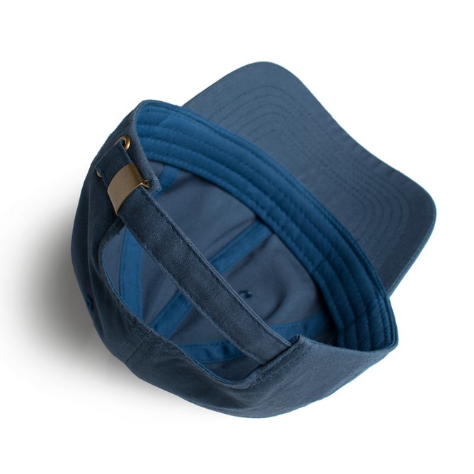 Adjustable fastener with metal clasp, tonal under-peak lining