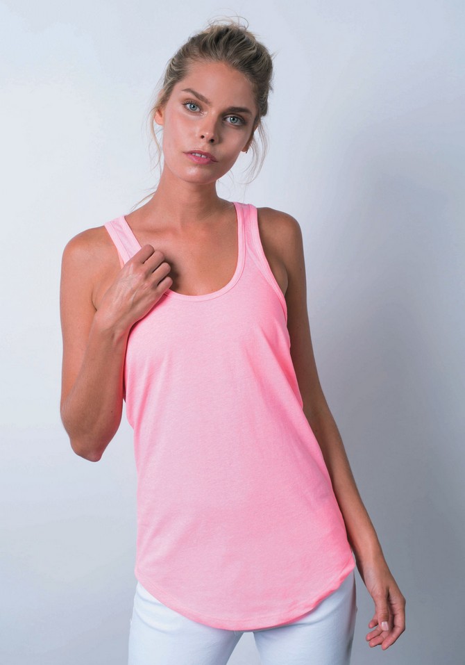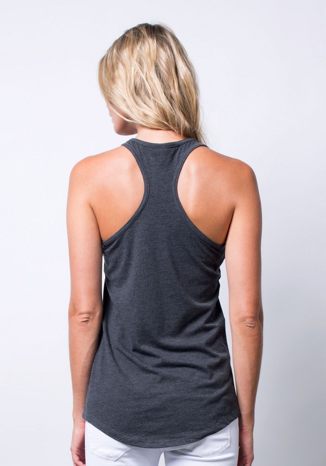 This luxurious racerback tank has the scallop bottom that is in demand. Made from super-soft ringspun fabric.