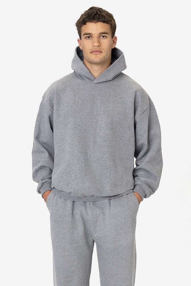 This simple hoodie is finished with ribbed cuffs at the wrists and waist, no pockets, and has a wider body than our traditional HF styles.