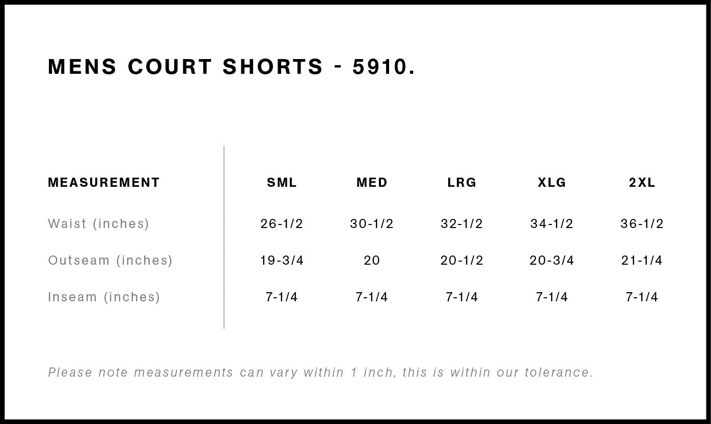 Side splits at hem, elastic waistband, white drawcord with metal tips, preshrunk to minimize shrinkage