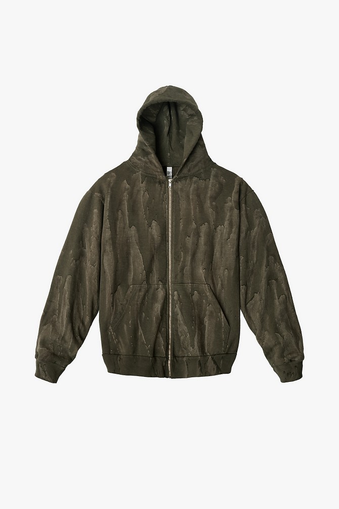 Our drip-dyed hoodies are dyed after they're sewn, which gives them a more durable and even color, including in the stitching and ribbing. This also means they'll have less shrinkage and colors will stay true after repeated washings.