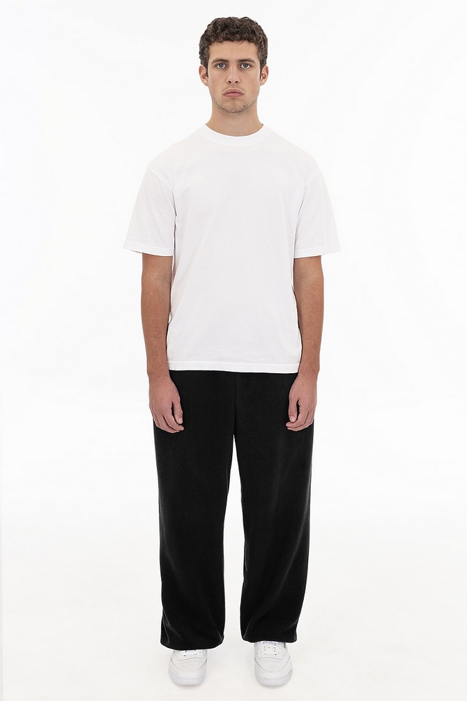 Introducing the Polar Fleece Sweatpant. These unisex sweatpants feature a classic, universal and generous fit with an elastic waist and ankle cuffs. Our Polar Fleece Textile is made of an insulating polyester to keep you warm all winter long, indoors or outdoors. We recommend sizing up in these pants for an extra oversized look. This style features an adjustable looped drawcord waist to get your desired fit, we suggest cutting the loop for simplified tying.